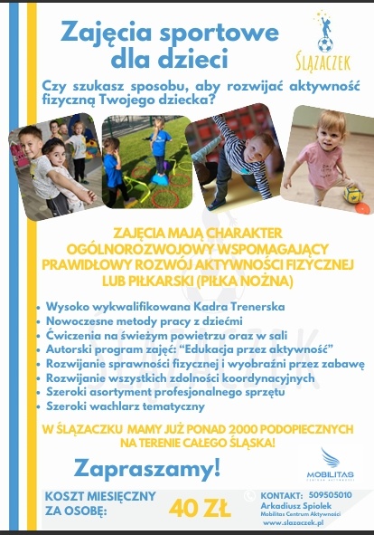 "Zapraszamy do udziału w Projekcie Ślązaczek, bierze w nim udział kilka tysięcy dzieci na Śląsku. Naszym celem jest poprawa sprawności fizycznej oraz pomoc w rozwijaniu pasji i aktywności najmłodszych.